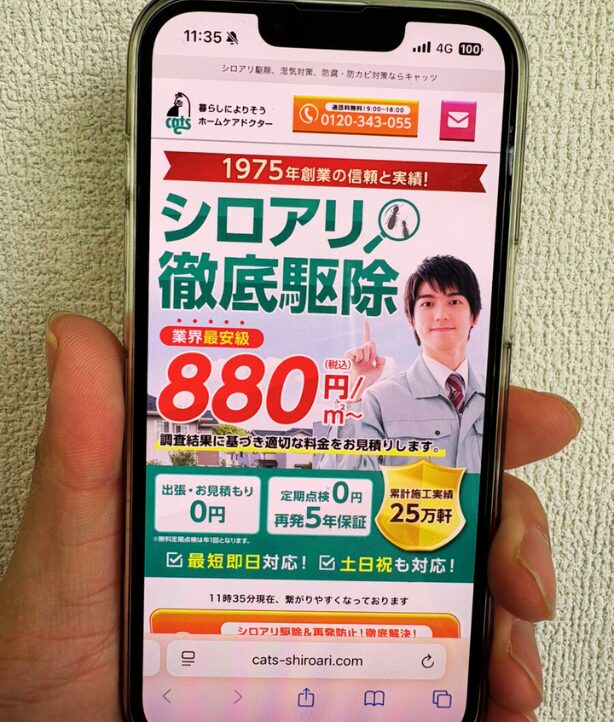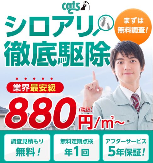 シロアリ駆除でコスパ・実績・保証がすべて揃うのが『シロアリ駆除のキャッツ』です。