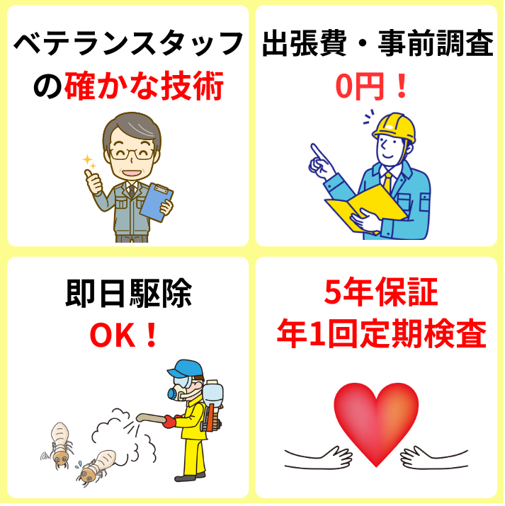 以下では、シロアリ駆除のキャッツが選ばれている5つの理由を紹介します