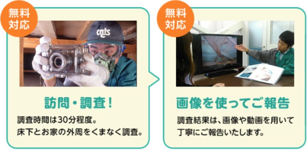 - 出張費・見積もり・床下調査すべて0円