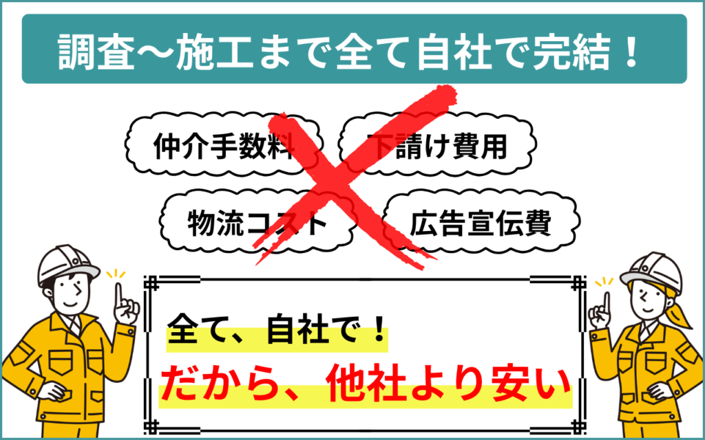 キャッツは他社とは違って、調査・見積もり・施工完了まで自社で全て作業します。