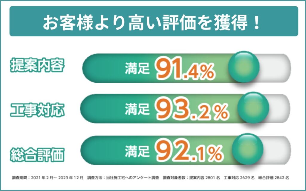 累積施工実績25万件超えの業者で、お客様アンケート満足度92.1%と大変人気があります。
